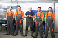Цех «Европрома» — это 140 специалистов и 40 единиц оборудования, включая станки с ЧПУ и дилерские стенды Bosch. Наши механики: